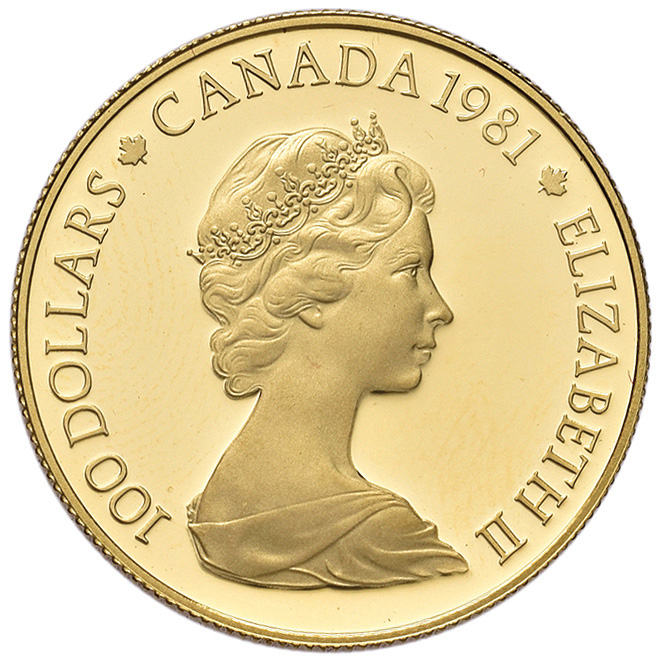 CANADA100 dollari 1981 in oro.PROOF. In elegante astuccio.