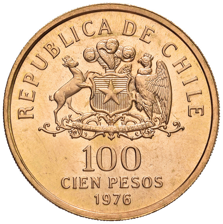 CILEAstuccio 1976 con 100 pesos in oro e 10 e 5 pesos in cupro-nichel. FDC.