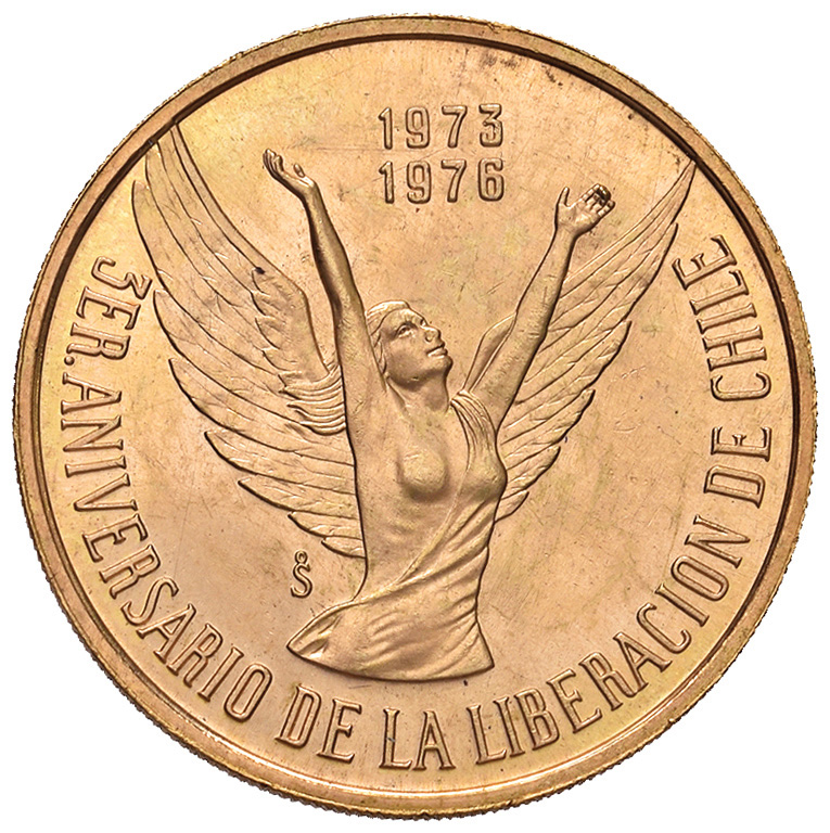Astuccio 1976 con 100 pesos in oro e 10 e 5 pesos in cupro-nichel. FDC.