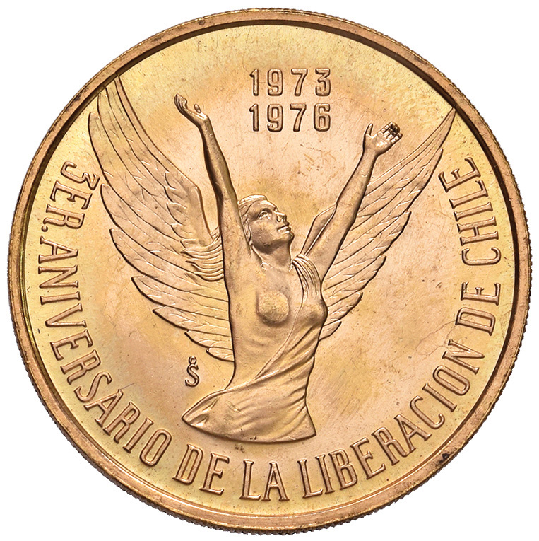 CILE.Astuccio 1976 con 100 pesos in oro e 10 e 5 pesos in cupro-nichel. FDC.