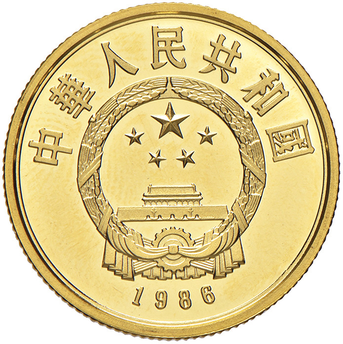 CINA. Repubblica Popolare.100 yuan 1986 in oro.PROOF. In astuccio.