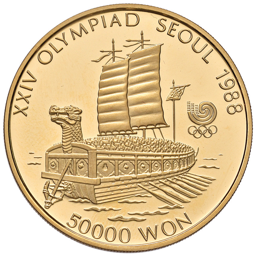 50.000 won 1986 in oro per la XXIV Olimpiade, Seul 1988.