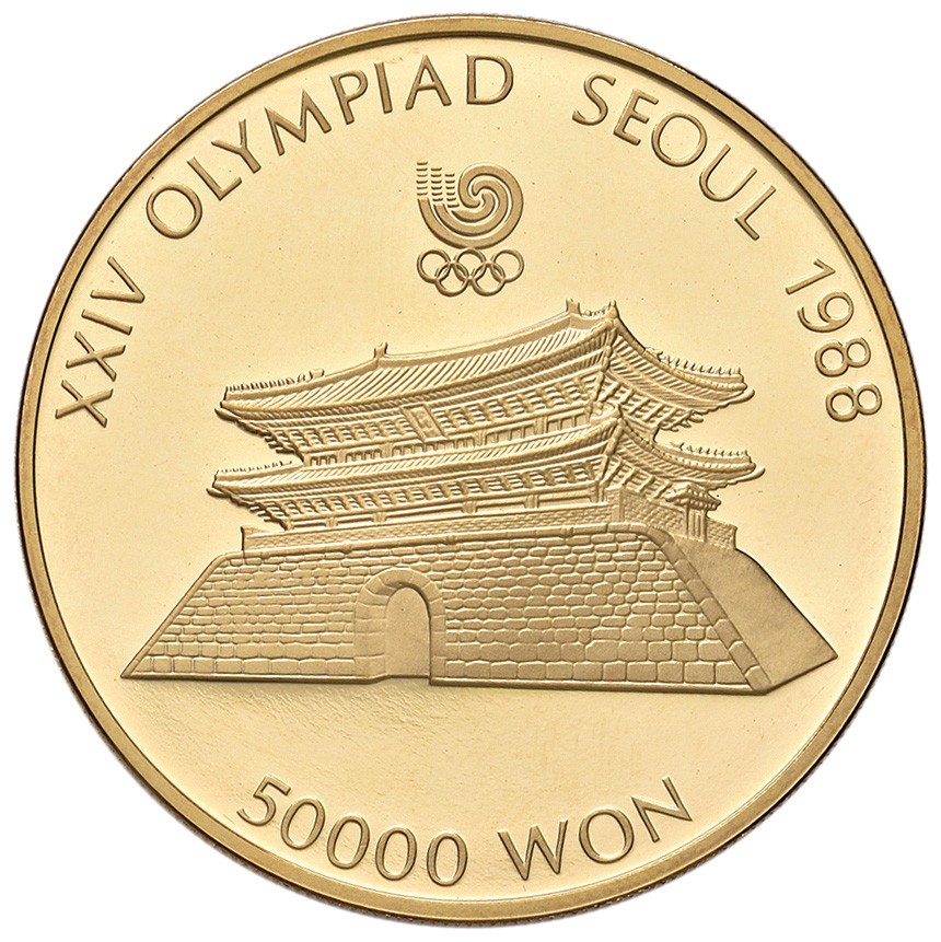 COREA DEL SUD.50.000 won 1987 in oro per la XXIV Olimpiade, Seul 1988.