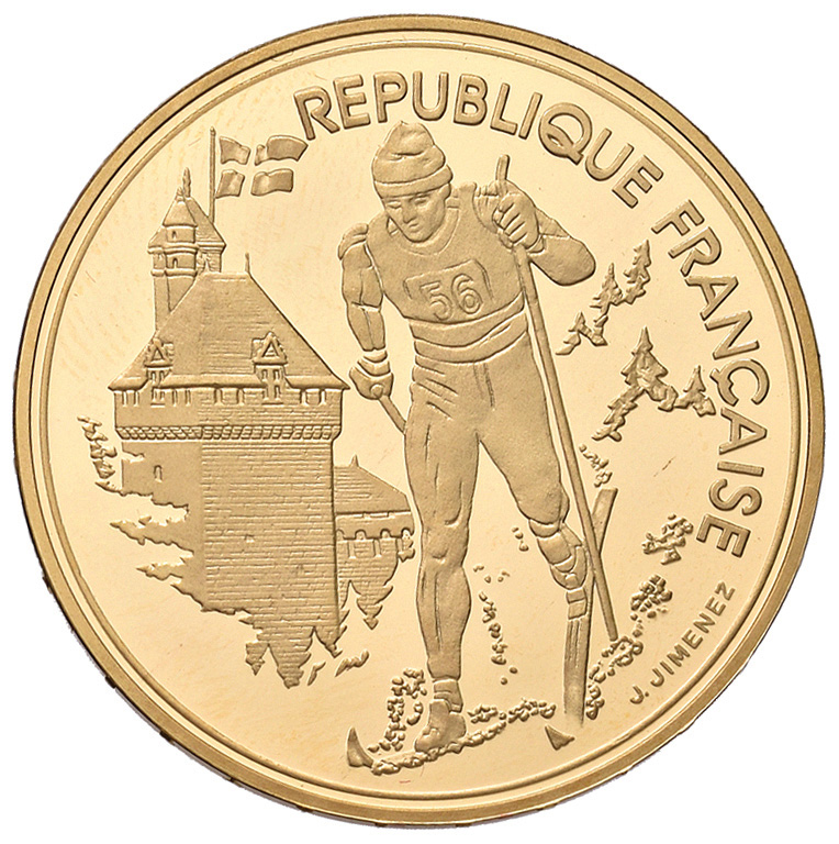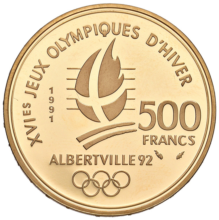 FRANCIA. Repubblica. 500 franchi in oro 1991 per i Giochi Olimpici d'Inverno,...