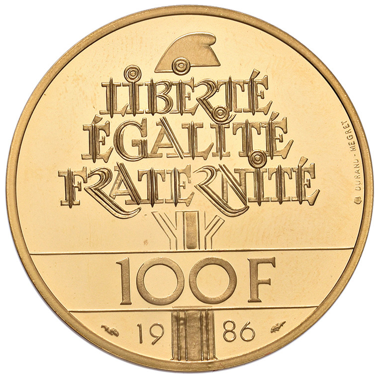 100 franchi 1886/1986, "Liberté". PROOF. In astuccio.