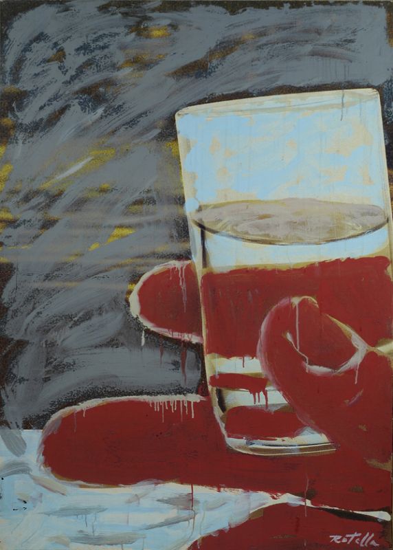 Mimmo Rotella (Catanzaro, 1918 - Milano, 2006) La mano rossa, (1986) Sovrapittura, cm. 140x100 Firma in basso a destra. Sul verso: timbro galleria d'Arte Niccoli, Parma; etichetta Arte Fiera, bologna, 1994. Autentica della Fondazione Rotella. Esposizioni: 1986, "Rotella, sovrapitture, 1986", Galleria d'Arte Niccoli, Parma.