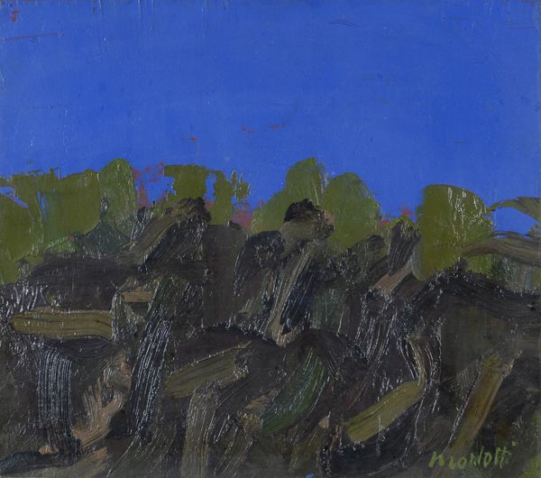 Ennio Morlotti (Lecco, 1910 - Milano, 1992) Vegetazione, (1972) Olio su tela, cm. 31x35 Firma in basso a destra. Sul verso: etichetta Galleria d'Arte il Castello, Milano. Autentica dell'autore su foto.
