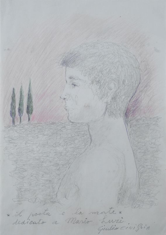 Giulio Ciniglia Il poeta e la morte Matite su carta, cm. 30x21 Firma e dedica...