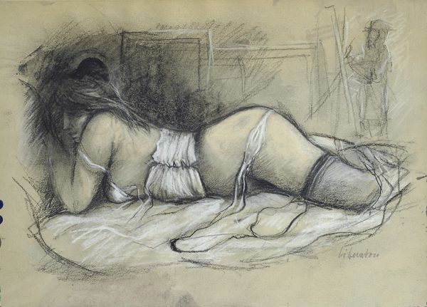 Fausto Maria Liberatore (Lucca, 1927 - 2004) Modella Carboncini su carta, cm....