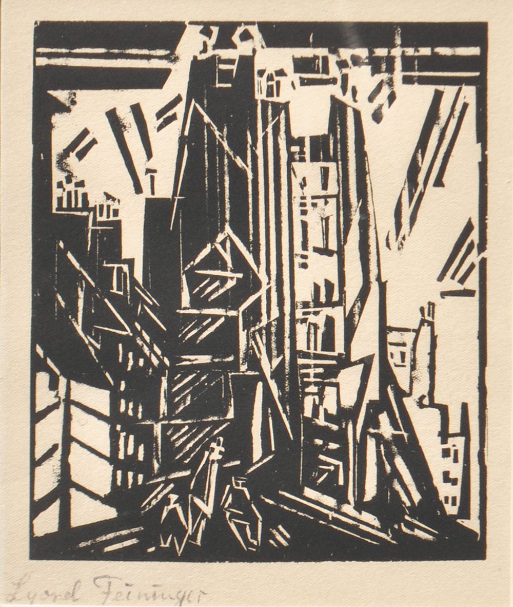 Lyonel Feininger (New York 1871 - 1956) Rue St. Jacques Paris, 1918;Holzschnitt, 13,5 x 11,5 (Platte), 28 x 22,3 cm (Blatt), verso Etikette Ausstellung Mart Rovereto, 2007