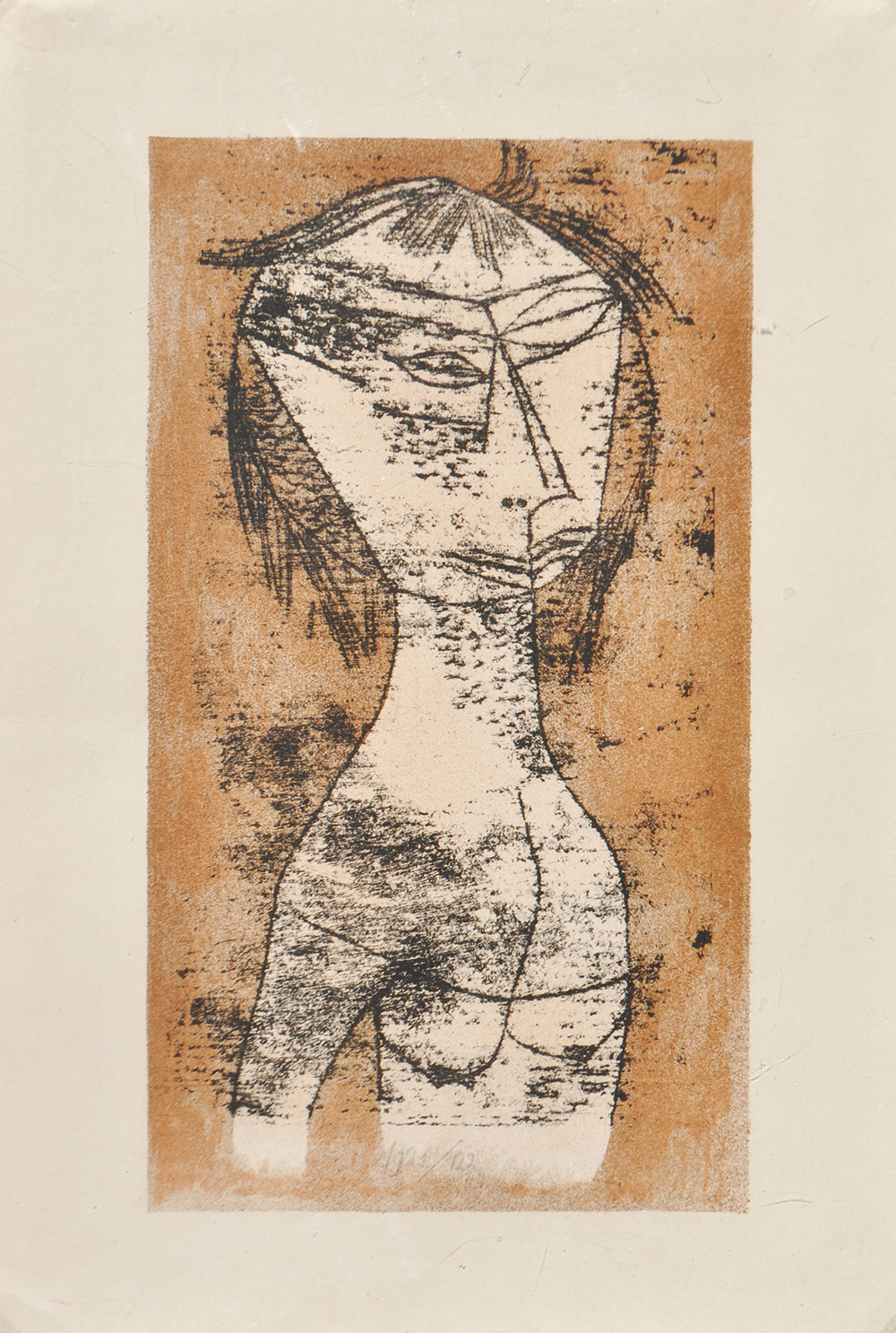Paul Klee (Münchenbuchsee 1879 - Muralto 1948) Die Heilige vom inneren Licht, 1921;Farblithografie, 30,7 x 17, 3 cm (Platte), 38,5 x 26,4 cm (Blatt)