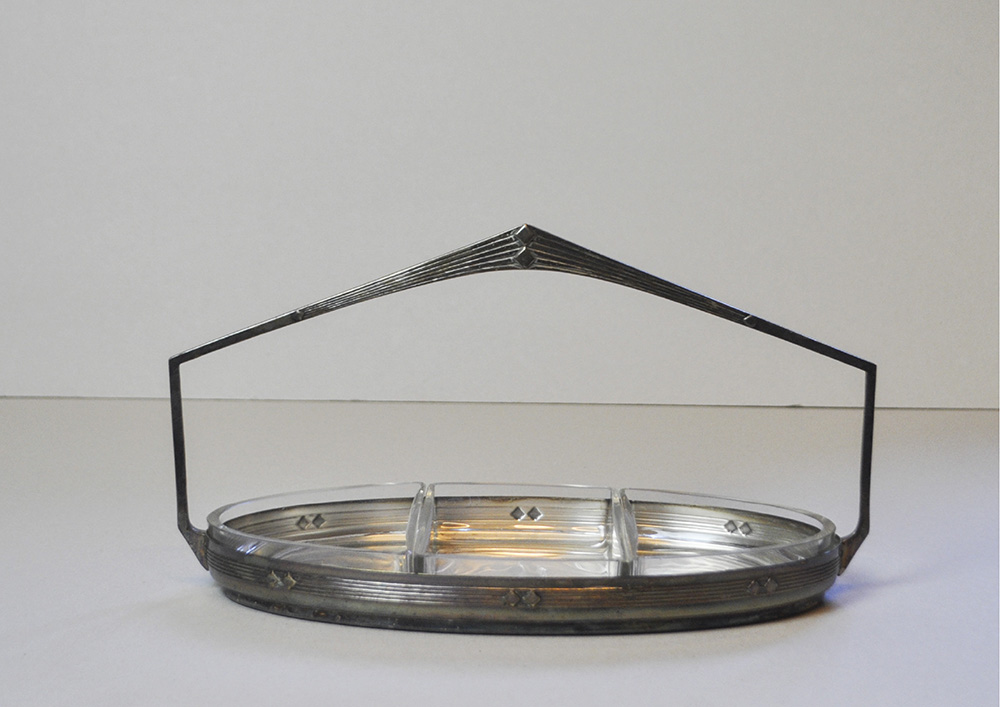 Lotto 166 | Jardiniere Jugendstil Wien;Metall u. Glas, 19,5 x 30,5 cm, Metall oxidiert...