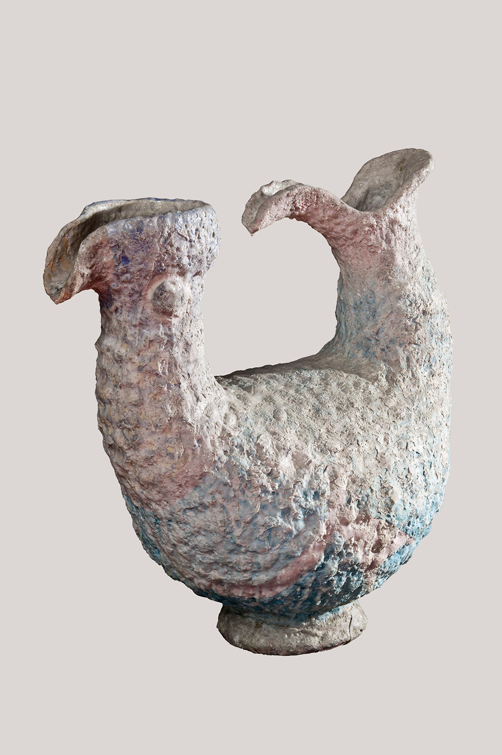 C.A.S. Vietri Vaso a doppia bocca espansa, anni '50;Smalti materici opachi nei toni dominanti, 91 x 48 cm, produzione C.A.S. Vietri sul mare - Ceramiche artistiche Solimene, marchio alla base