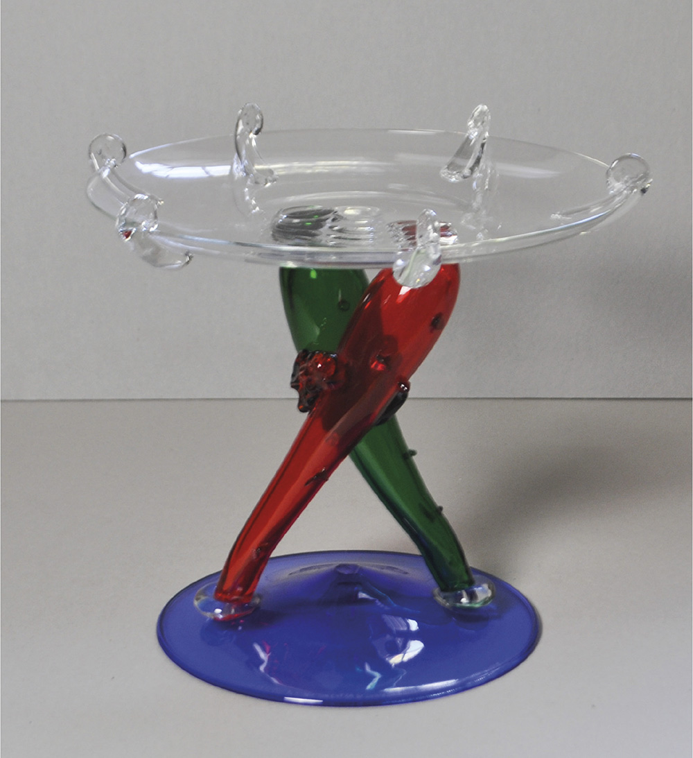 Vetro col., h 29 cm, diam. 31,5 cm, produzione "Compagnia Vetraria Muranese" per Memphis Extra