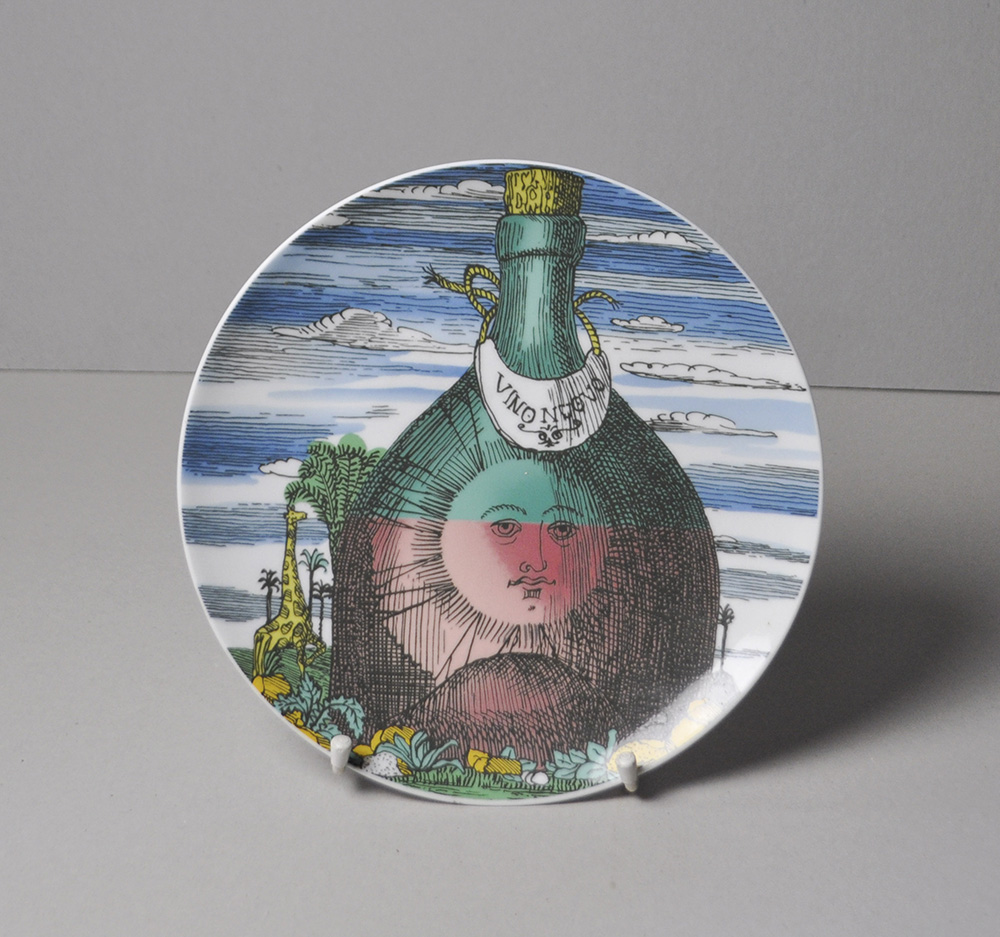 Piero Fornasetti Teller;Siebdruckkeramik, Durchmesser 26,5 cm, Produktion...