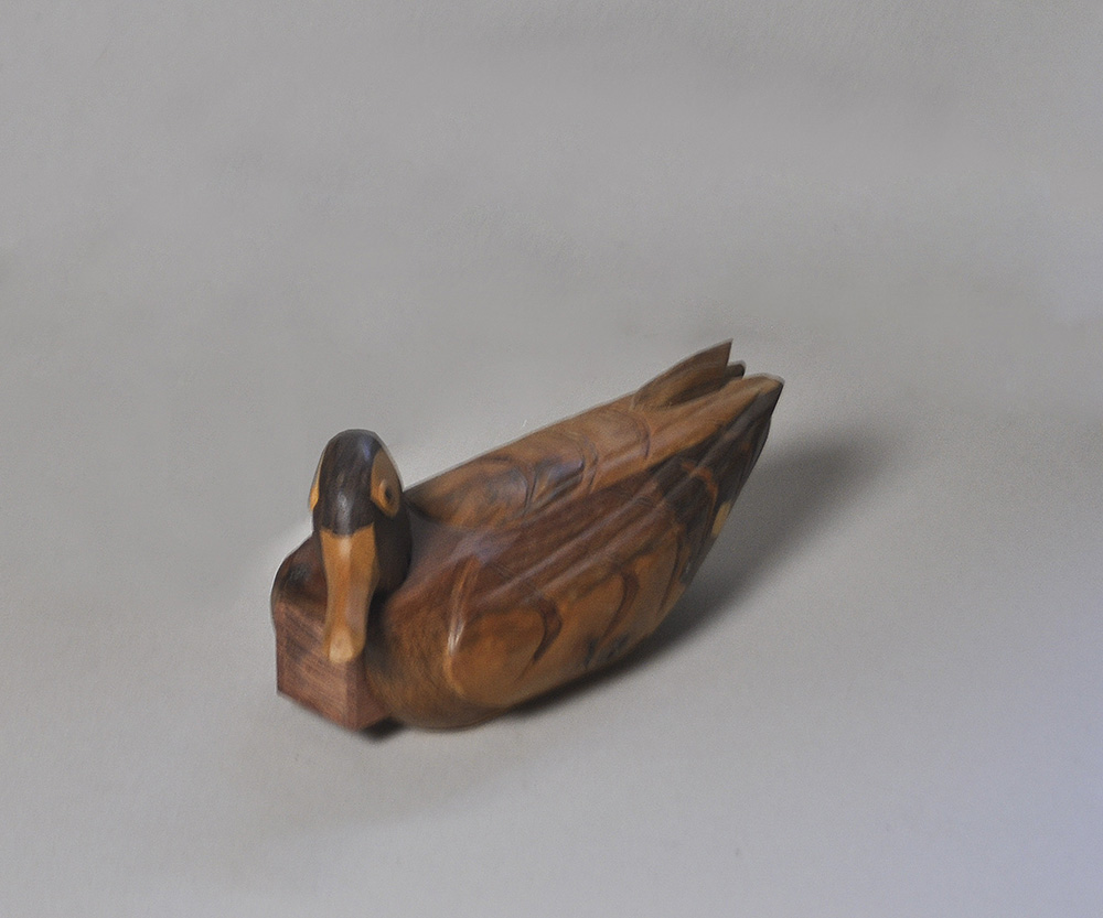 TZ (Monogramm/Monogramma) Knäkente, 1986;Verschiedene Hölzer, 30 x 12,5, Ausgabe 11/100, Beschriftung unten "TZ per Omnia with WR., datiert
