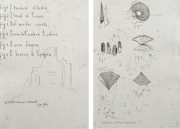 Piero Pizzi Cannella (Roma, 1955) Dall'atelier dei mari e dei venti Acquaforte, mm. 350x250 (ciascuna); es. pa. Coppia di acqueforti firmate in basso a destra.