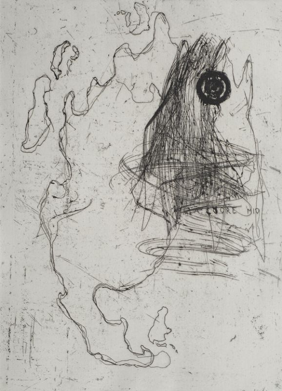 Piero Pizzi Cannella (Roma, 1955) Bella cuore mio Acquaforte, mm. 350x250; es. pa Firma in basso a destra. Tiratura in basso a sinistra.