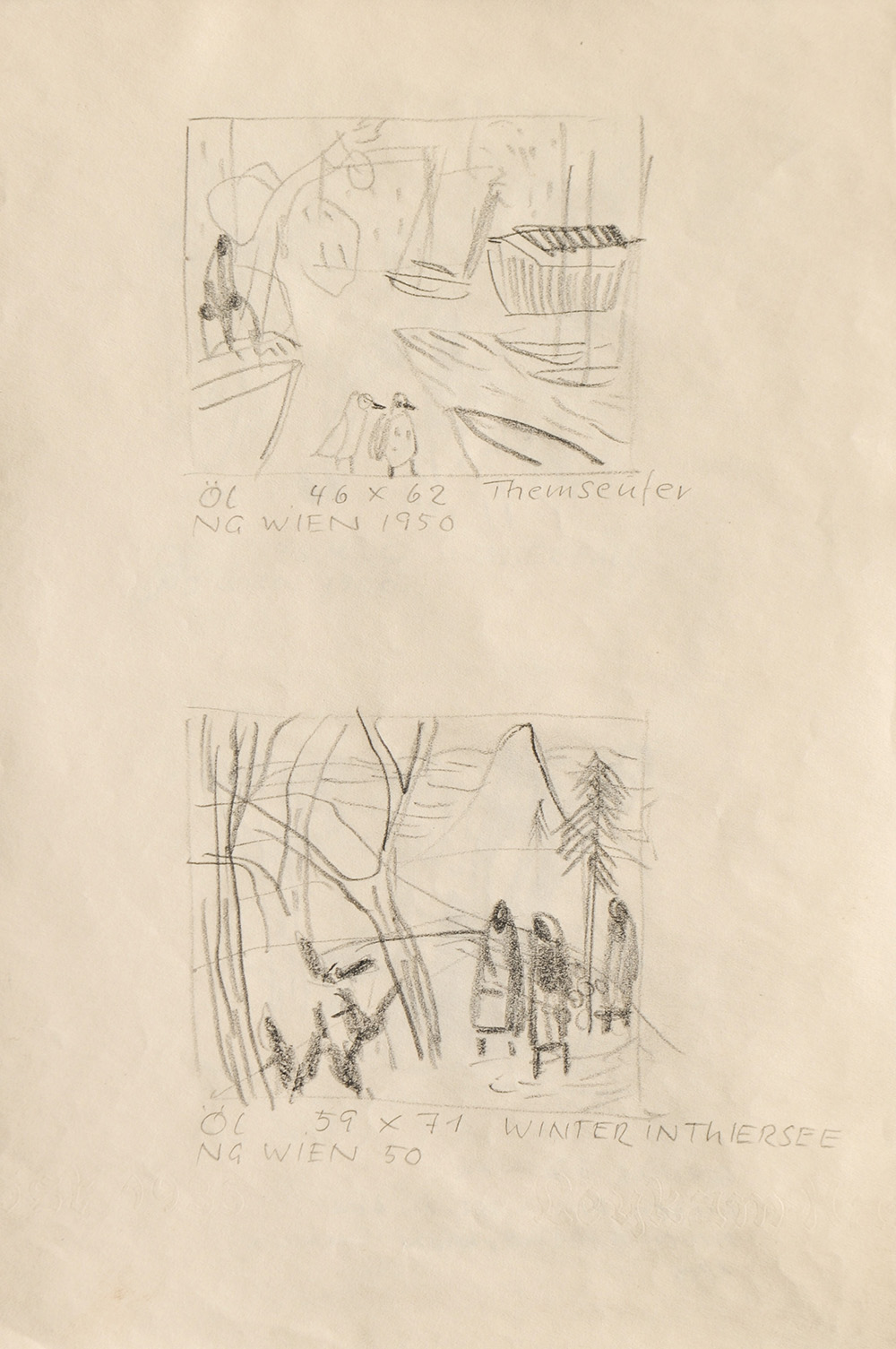 Gerhild Diesner Bilder der Ausstellung in der Neuen Galerie in Wien (Kallir) 1950;8 Blätter mit 30 Bleistiftzeichnungen nach ihren Werken,
