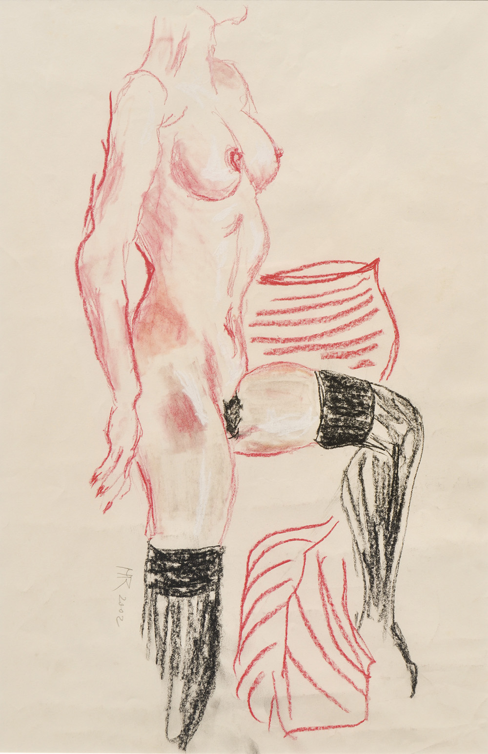 Herbert Rosendorfer (Bozen 1934 – Eppan 2012) Akt mit schwarzen Strümpfen, 2002;Kreide, 52 x 34 cm, gerahmt