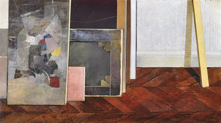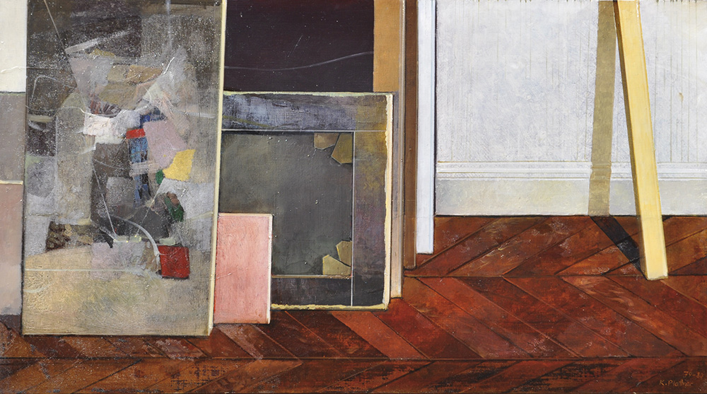 Karl Plattner (1919 - 1986) Atelier, 1979/80;Öl auf Leinwand, 49,5 x 89,5 cm