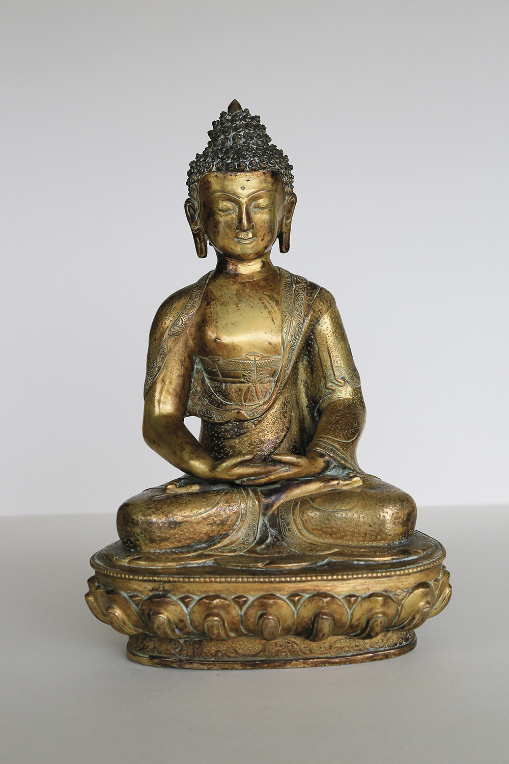 - Buddha der Meditation, Nepal, 2. Hälfte 20. Jh.;Feuervergoldete Bronze, Höhe 33 cm
