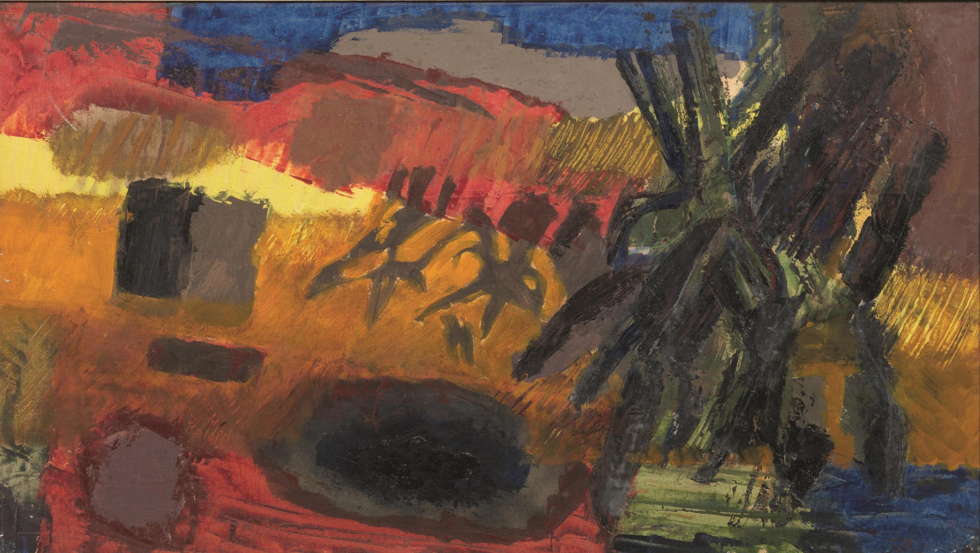 Riccardo Licata (Torino 1929) SENZA TITOLO olio su carta applicata su tela, cm 56x96