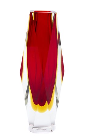MANDRUZZATO - MURANO Vaso sfaccettato rosso e giallo, 1960 circa Vetro...