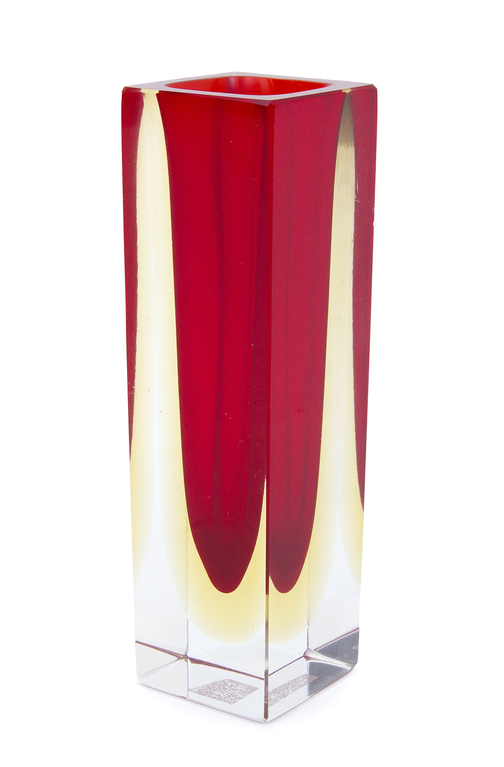 MANDRUZZATO - MURANO Vaso sfaccettato rosso e giallo, 1960 circa Vetro sommerso, h. 17 cm
