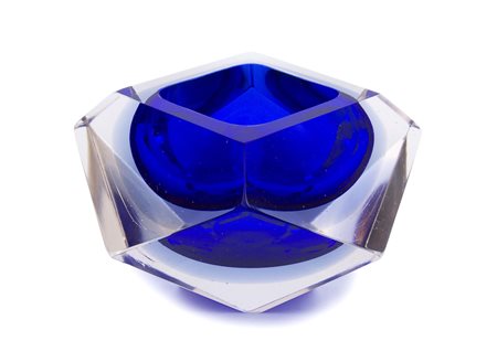 MANDRUZZATO - MURANO Posacenere sfaccettato blu, 1960 circa Vetro sommerso, 7...