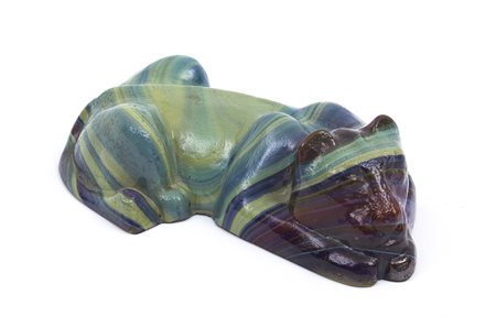 SILVANO SIGNORETTO - MURANO Leonessa, 1979 Figura in vetro calcedonio, 6 x 18 x 10 cm Firma e data incise sotto la base: S. Signoretto 1979