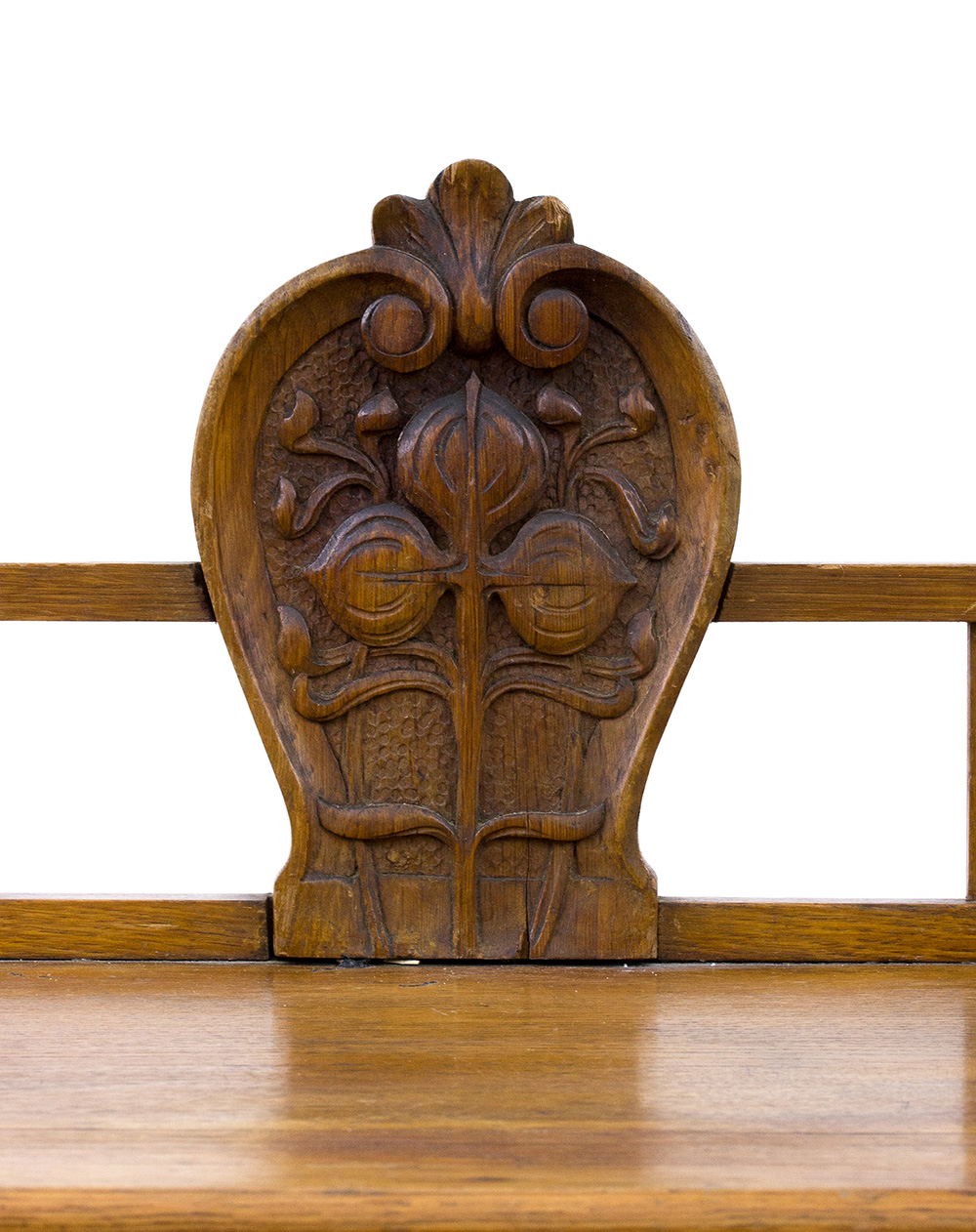 MANIFATTURA ITALIANA Libreria Liberty a quattro ripiani, 1900-1915 Struttura in rovere intagliato con motivi floreali, 150 x 70 x 36 cm
