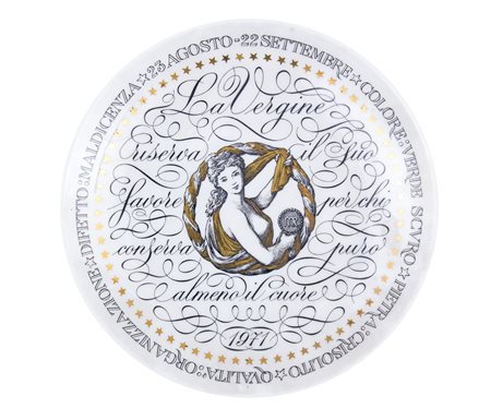 PIERO FORNASETTI Piatto “La Vergine” della serie “Zodiaci”, 1971 Porcellana...
