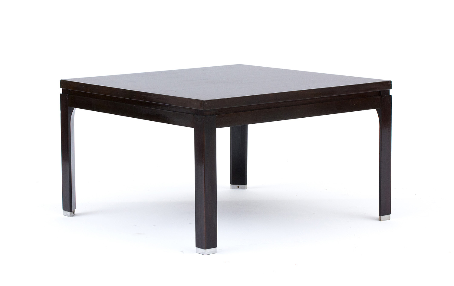 ICO PARISI Tavolo basso quadrato “Arona”, 1958 Struttura impiallacciata in palissandro, 40 x 68 x 68 cm Etichetta: MIM ROMA PUBBLICAZIONI R. Lietti, Ico Parisi. Design. Catalogo ragionato 1936-1960, Milano 2017, p.577