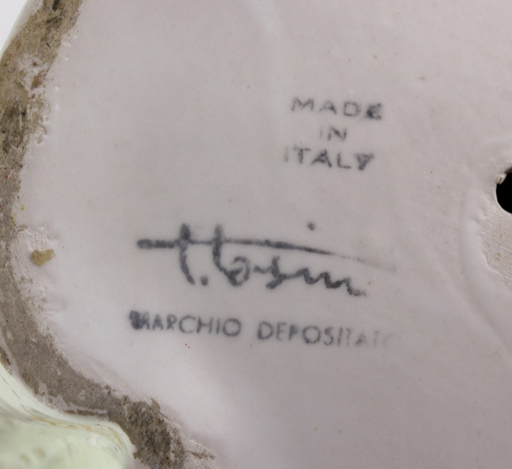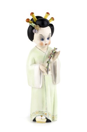TARCISIO TOSIN Giapponesina Scultura in ceramica dipinta, h. 28,5 cm Firma sotto la base: T. Tosin Firma sul retro in basso: T. Tosin Iscrizione sotto la base: marchio depositato made in Italy