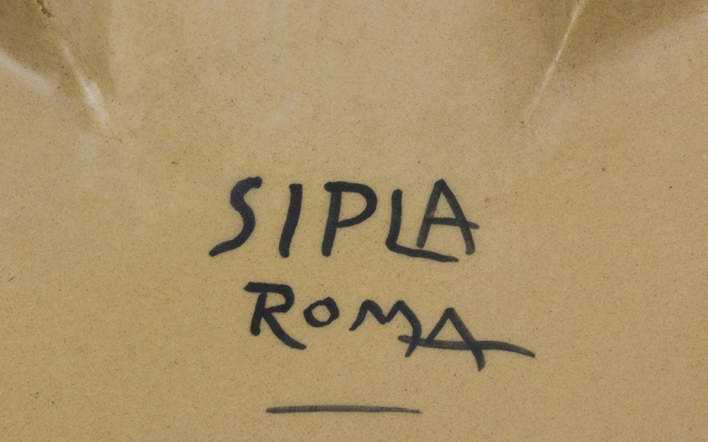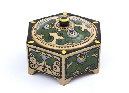 SIPLA - ROMA Scatola con coperchio, 1920 circa Terracotta dipinta con motivo...