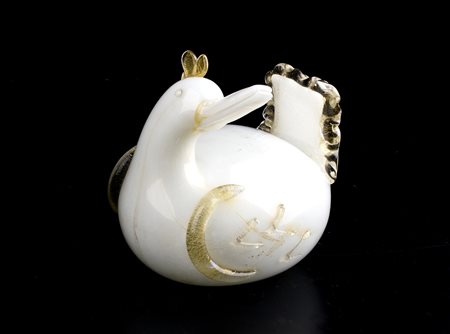 TOMASO BUZZI Figura di anitra, anni ‘30 Vetro lattimo con foglia d’oro e...