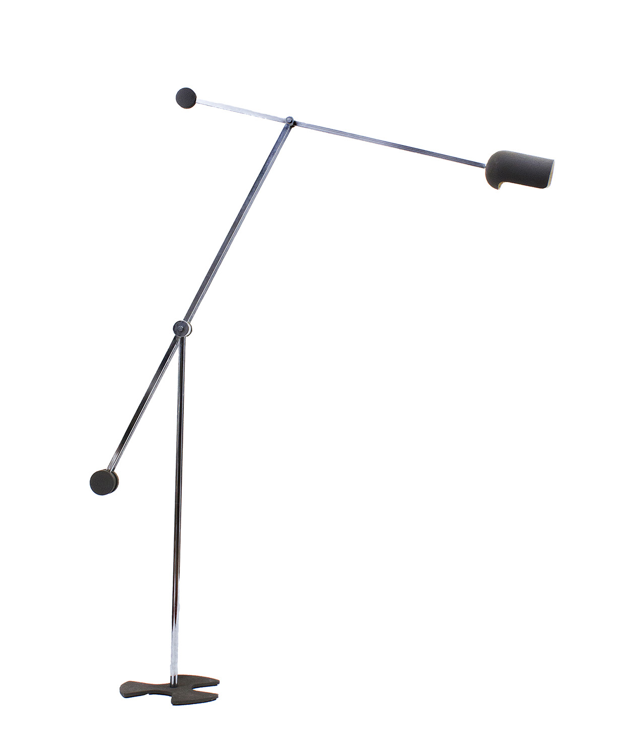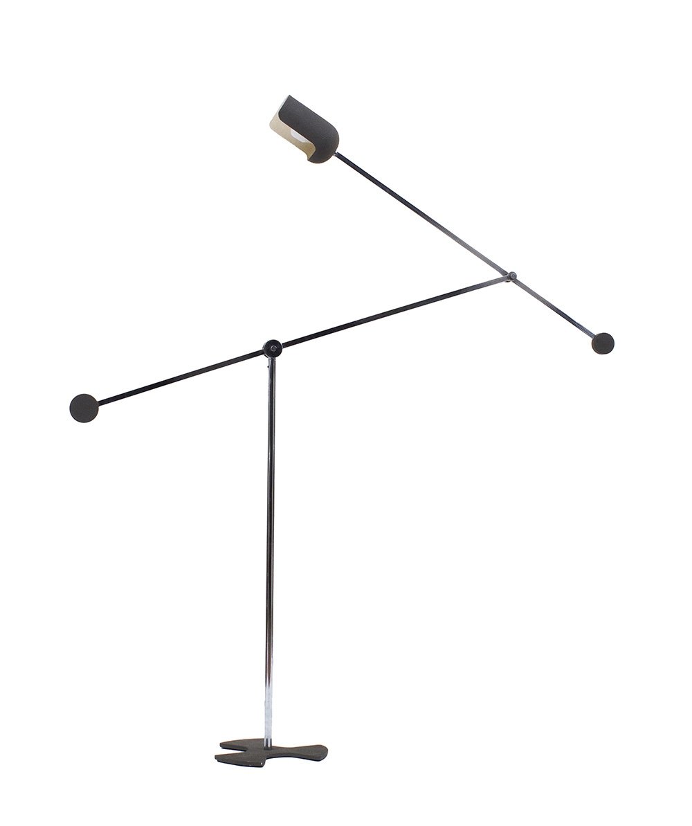 MANIFATTURA ITALIANA Lampada da terra con braccio regolabile, anni ‘70 Struttura in metallo cromato e laccato, 144 (220) x 165 (205) x 148 cm circa