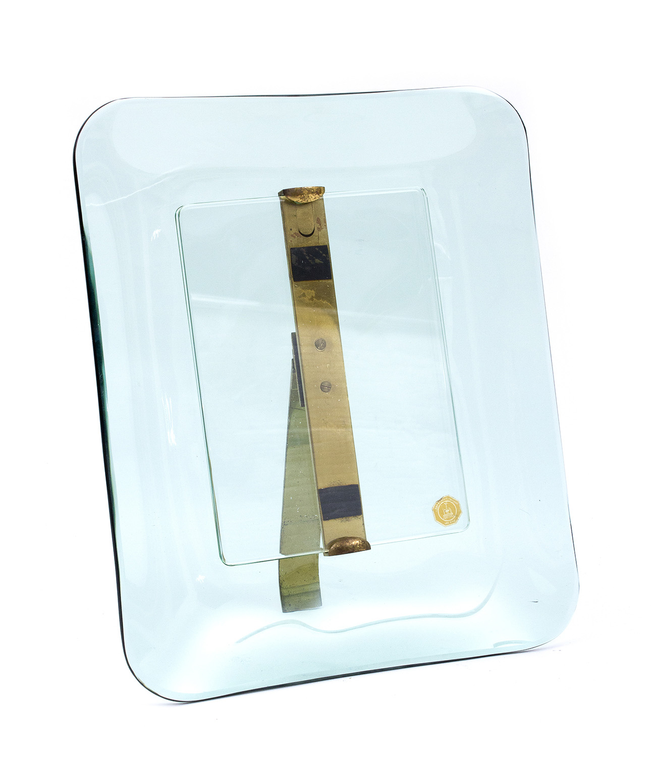 PIETRO CHIESA - FONTANA ARTE Portaritratti, 1939 Cornice in cristallo curvato di forma rettangolare a spigoli arrotondati, sostegno in ottone, 38 x 32 cm Etichetta originale: Vetri d’Arte Fontana Milano e simbolo grafico PUBBLICAZIONI L. Falconi, Luci e trasparenze. Fontana Arte 1930-1950, catalogo mostra galleria Babuino Novecento, Roma 2006, p.92