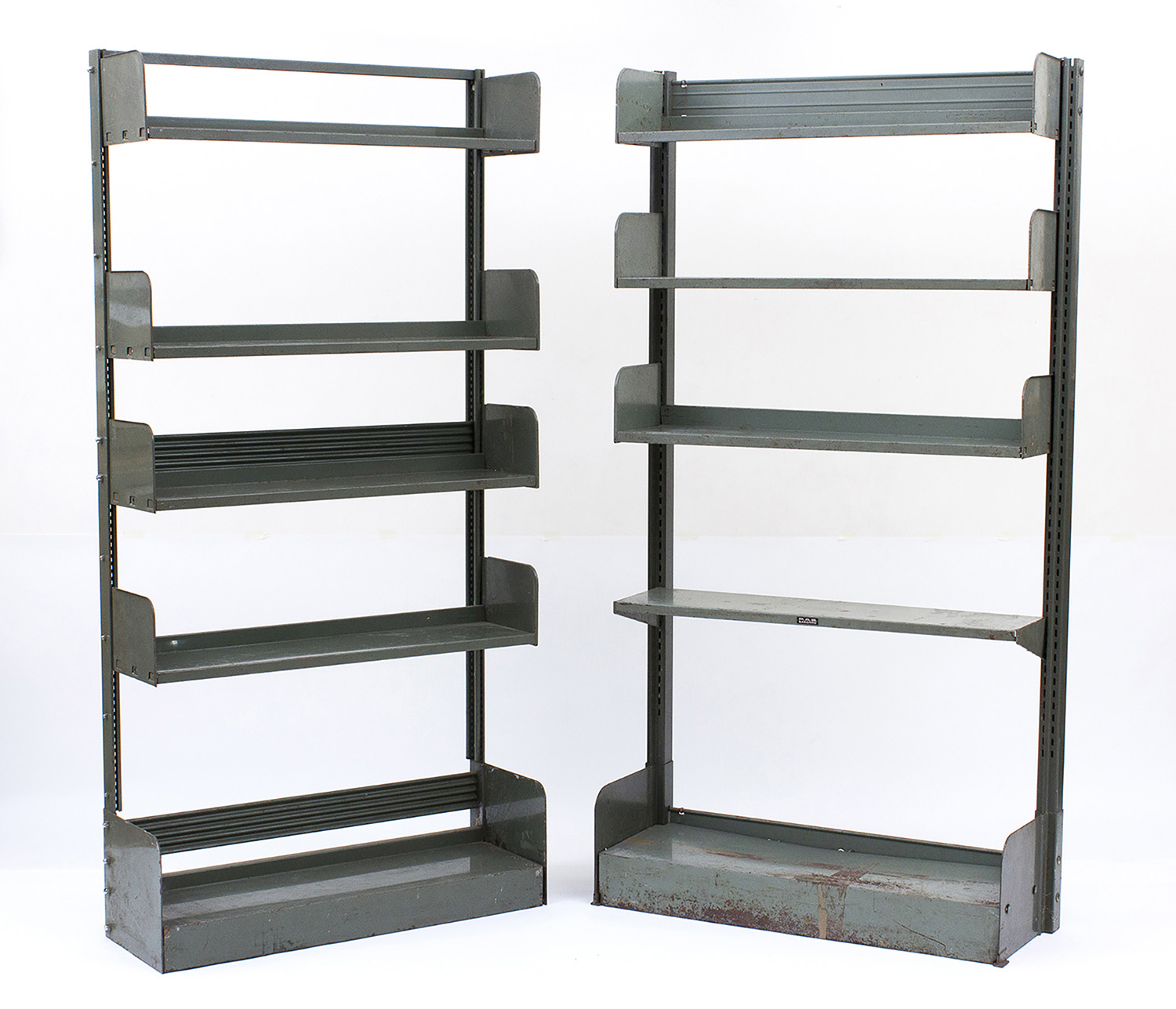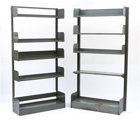 LIPS VAGO Coppia di librerie “Congresso”, anni ‘60 Struttura componibile in lamiera di acciaio smaltata di grigio, 200 x 105 x 36 cm (cada una) CONDITION REPORT Qualche abrasione allo smalto