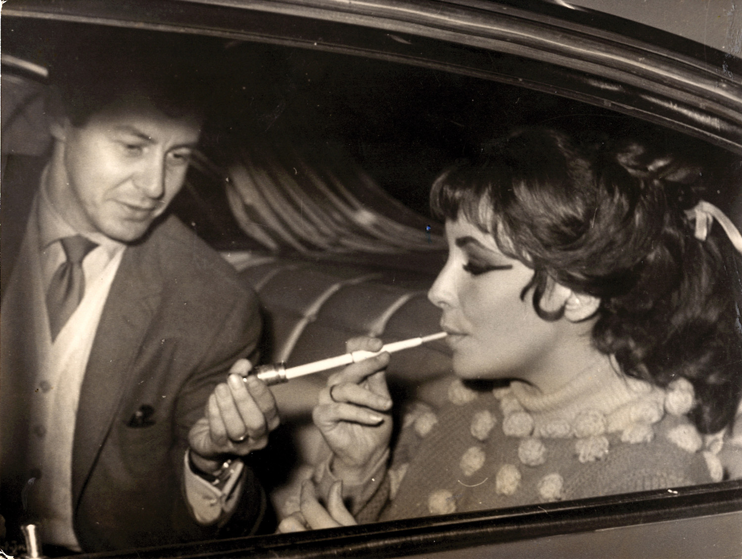 MARCELLO GEPPETTI L’ultima fotografia Liz Taylor e il marito Eddie Fisher insieme, 1962 Vintage, stampa alla gelatina sali d’argento, cm. 18x24 Timbro dell’autore, didascalia scritta a mano dall’autore