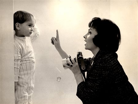 PIERLUIGI PRATURLON, DETTO PIERLUIGI Gina Lollobrigida col figlio Andrea Mirko Skofic, anni 60 Vintage, stampa gelatina sali d’argento, cm. 30x24 Sul retro timbro del fotografo