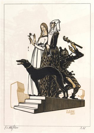 PUBLIO MORBIDUCCI Le donne ed il buffone Xilografia, es 198/500, 22,7 x 16 cm...