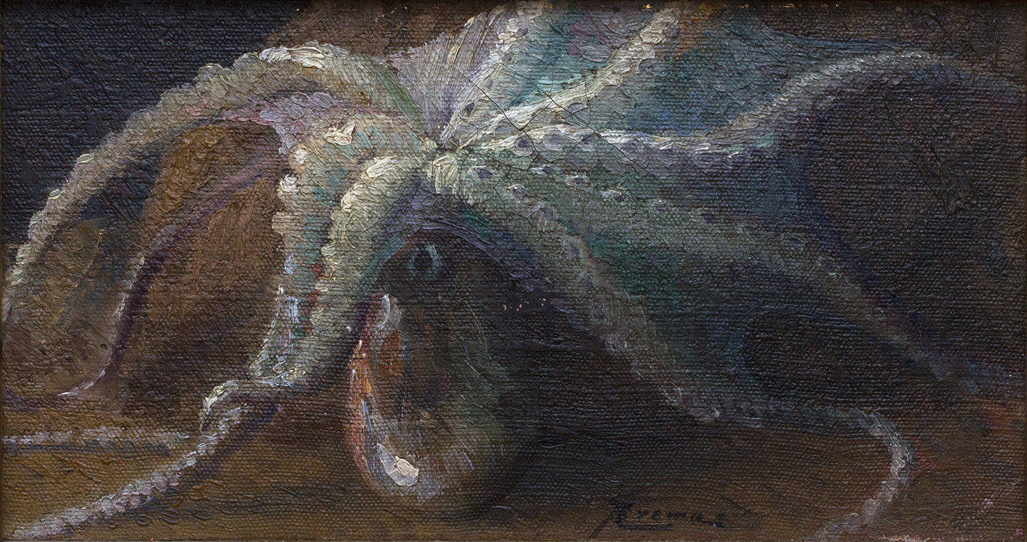 GIOVANNI BATTISTA CREMA Polipo Olio su tela applicata su tavola, 17,5 x 32 cm Firma in basso a destra: GB Crema