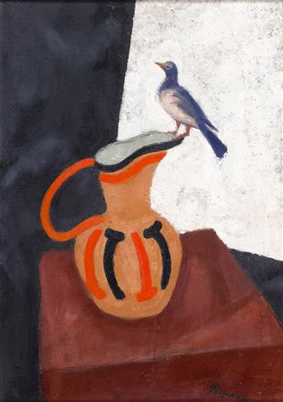 PASQUAROSA MARCELLI BERTOLETTI Uccello e Brocca Olio su cartone, 70 x 50 cm...