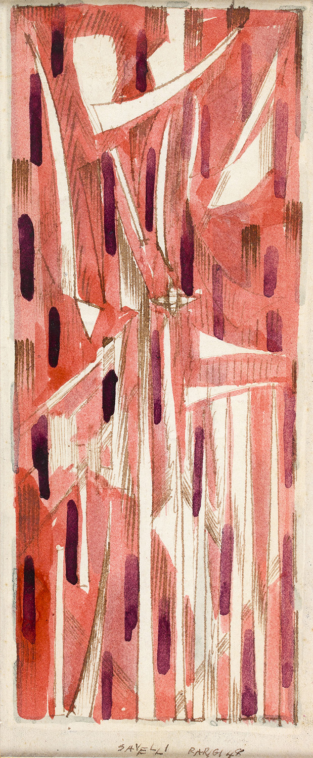 ANGELO SAVELLI Senza Titolo - Parigi, 1948 China colorata su carta, 20 x 9 cm Firma, luogo e data in basso: Savelli Parigi 48