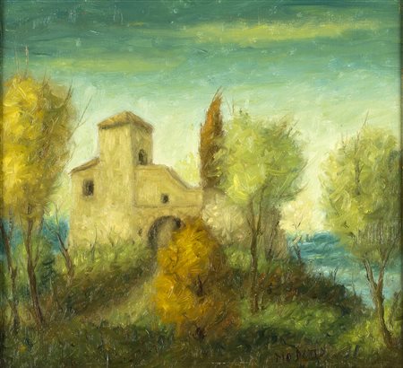 ANGILOTTO MODOTTO Paesaggio, 1941 Olio su tavola, 25 x 27,5 cm Firma in basso a destra: Modotto Firma, luogo e data al retro