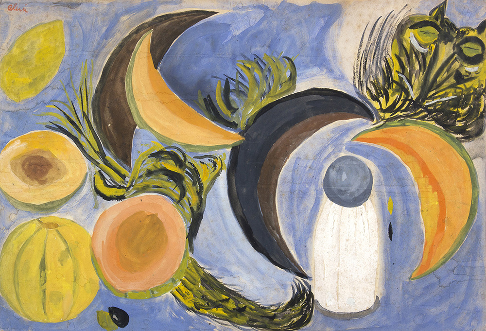 CARLO LEVI La bottiglia di latte Acquerello su carta, 35 x 50 cm Firma in alto a sinistra: C. Levi
