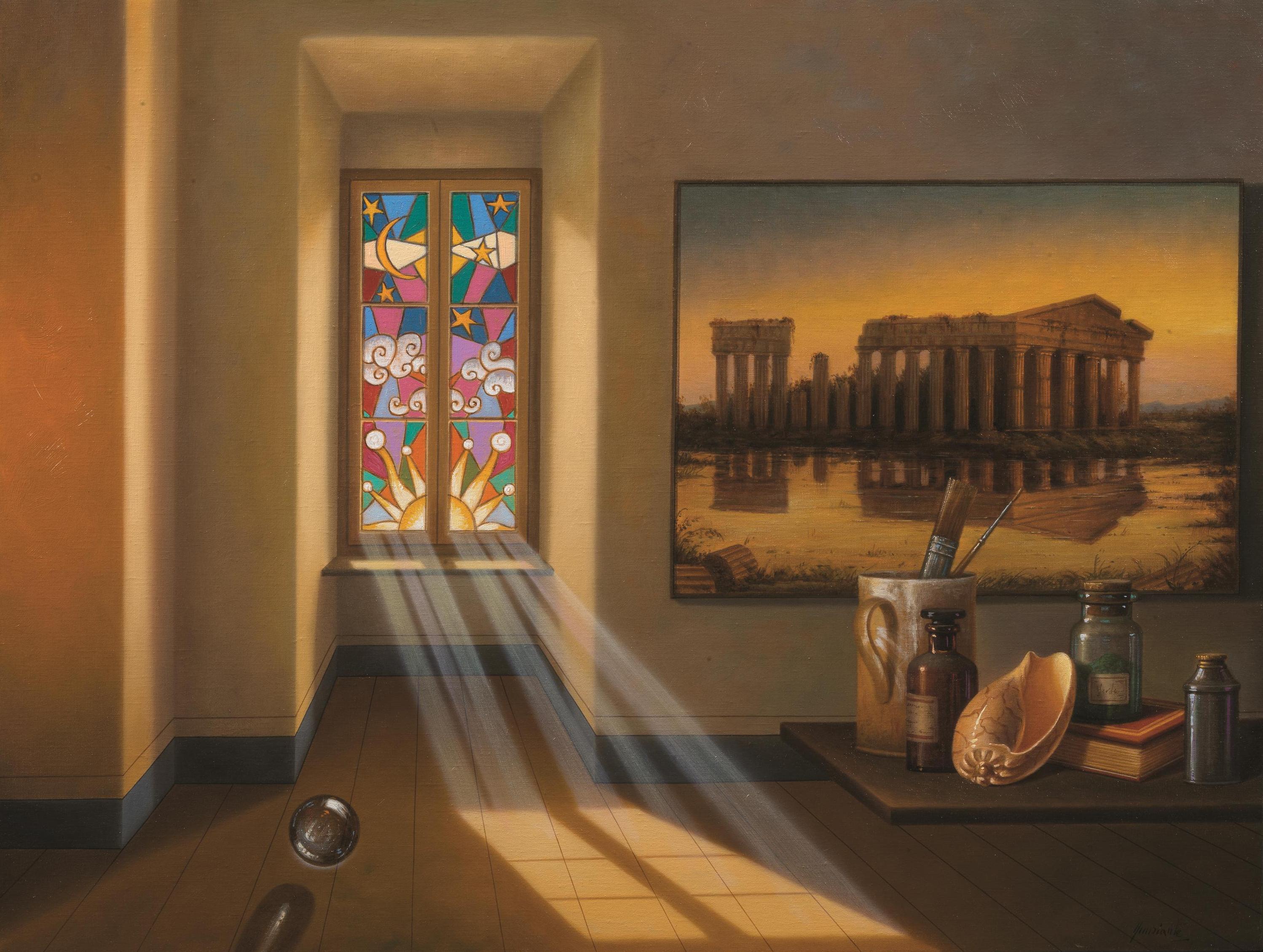 Antonio Nunziante (Napoli 1956) LA BELLEZZA CI SALVERA' olio su tela, cm 60x80 firmato sul retro: titolato, firmato e datato eseguito nel 2008 L'opera è accompagnata da certificato di autenticità rilasciato dall'artista n. AN008-1609 A Bibliografia Nunziante. Opere 2000-2008, Milano 2009, p. 87