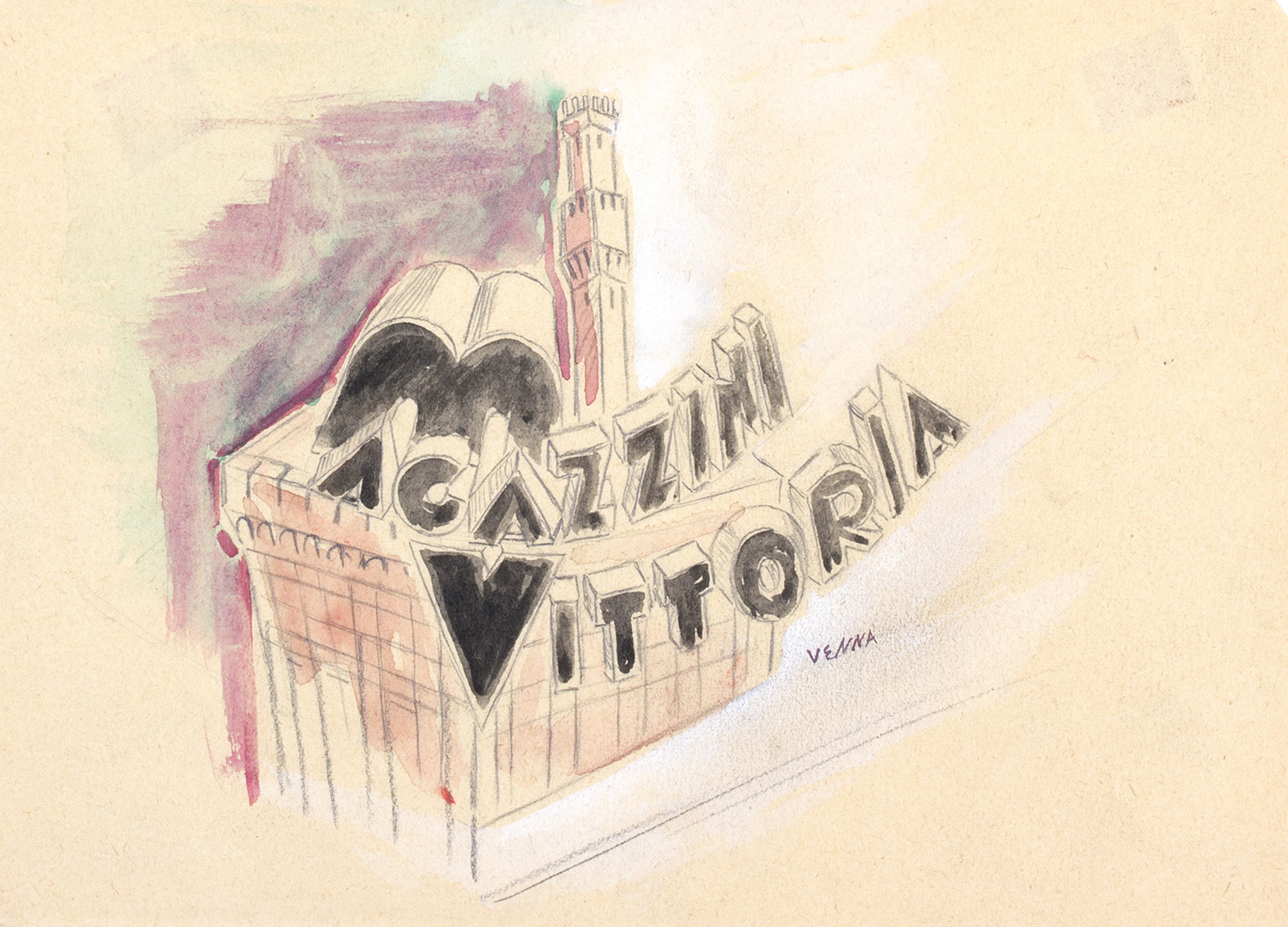 LUCIO VENNA Magazzini Vittoria Matita e acquerello su carta, 31,5 x 23,5 cm Firma a destra: Venna